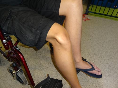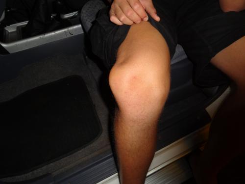 Dies war sehr sehr schmerzhaft und hat mir auch meinen ersten Krankenhausbesuch in Australien verschafft. Dort habe ich Morphium und Lachgas gegen die Schmerzen bekommen. Hat auch im ersten Moment gut gewirkt aber als der Arzt versucht hat die Kniescheibe wieder zurueckzudruecken war ich wieder voll da und die Schmerzen auch. Zu meinem Bedauern hat er es nicht alleine geschafft und musste einen zweiten Arzt holen der mein Bein festhalten musste und zu zweit haben sie dann meine Knieplatte zurueckgepruegelt. War eine sehr Schmerzhafte angelegenheit, aber konnte nach 3-4 Tagen wieder ganz normal gehen und habe auch keine Nachwirkungen. Die Nachfolgenden Bilder sind allerdings nichts fuer Zartbeseidete :D