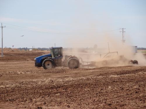 Da es dort ja ziemlich trocken ist hat der Farmer sein eigenes Bewaesserungssystem entwickelt. Also: Die Felder (zwischen 30 und 250 hektar gross) wurden in kleinere Segmente (Bay's) eingeteilt die immer so 10 hektar gross waren. Um jedes Bay wurde dann ein kleiner Damm aufgeschuettet um dann das komplette Bay mit Wasser zu fluten.