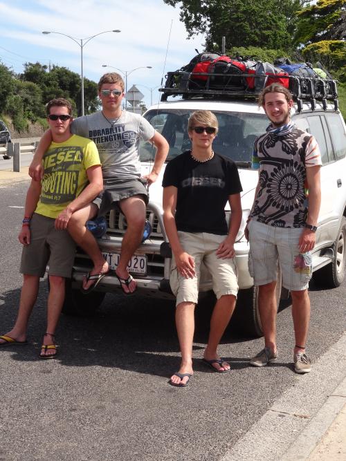 Den ersten Teil dieser Reise (Melbourne - Perth - Melbourne) haben wir nun mit nur mit einem Auto gestartet. Wir haben unser Auto bei einem Freund in Melbourne unterstellen koennen und sind dann mit Stefans Auto (Toyota Landcrouser Prado) richtung Perth gefahren. Wir waren zunaechst zu fuenft. Mittlerweile war ein anderer Dennis, der ebenfalls mit unser Organisation nach Australien gekommen ist und davor auch schon ein paar Wochen mit Finn unterwegs war, dabei. Aussderdem hatten wir eine Frau an Board. Sie hiess Deniese und war eine Freundin von Stefan. Wir haben also unser Auto geparkt und sind dann Richtung Perth gefahren. Hin und zurueck eine Strecke von ca. 8000 km :D