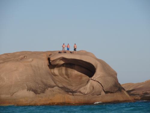 Zur Zeit haben wir immer so zwischen 32 und 36 Grad. Es ist also sehr heiss und man muss morgens ab 8 Uhr aus dem Zelt raus weil es sonst so heiss wie in einer Sauna wird. Also mit Auschlafen ist schonmal nix :D Die Sonne brennt unglaublich doll und es fuehlt sich teilweise so an als ob jemand einfach mit einem Foehn ins Gesicht pustet. Man schwitzt den ganzen Tag und das Meer ist auch nicht wirklich eine riesen Abkuehlung. Aber wir haben trotzdem immer super viel Spass und geniessen die Zeit in voller Zuegen :)