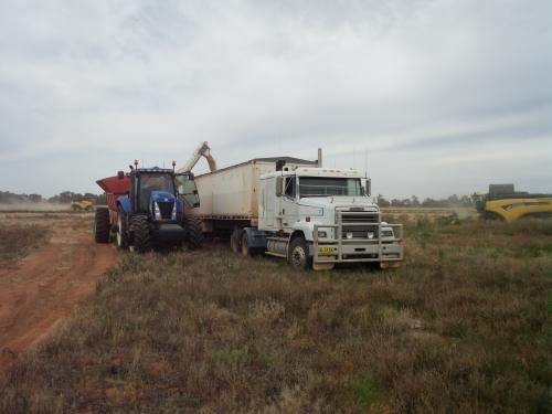 Nun mal was zu meiner Arbeitsstelle. Wir (Stefan und ich) haben auf einer Farm gearbeitet die ca. 25.000 Hektar gross war. Das konnte ich natuerlich erstmal nicht glauben, wenn ich daran denke dass wir Zuahse ca. 200 Hektar haben. Aber ich wurde dann ziemlich schnell vom Gegenteil ueberzeugt. Und ich habe bis heute noch lange nicht die komplette Farm gesehen. Die Farm selbst ist in Italienischem Familienbesitz und dort arbeiten ca. 15 Australier, die das ganze Jahr ueber das ganze Land bewirtschaften. Wir waren die einziegen Backpacker und die haben uns vom ersten Tag an voll vertraut. Man ist morgens mit seinem Pickup zu seinem Feld gefahren, da man abends die Maschine einfach auf dem Feld stehen gelassen hat. Die komplette Kommunikation lief ueber Funkgeraet ab. Manchmal hat man den Chef schon mal 4 - 5 Tage garnicht gesehen. Und wenn mal was repariert werden musste, was ziemlich oft der fall war, kamen die Mechaniker aufs Feld, da man von einiegen Feldern erstmal eine Stunde oder laenger zur farmeigenen Werkstatt fahren wuerde.